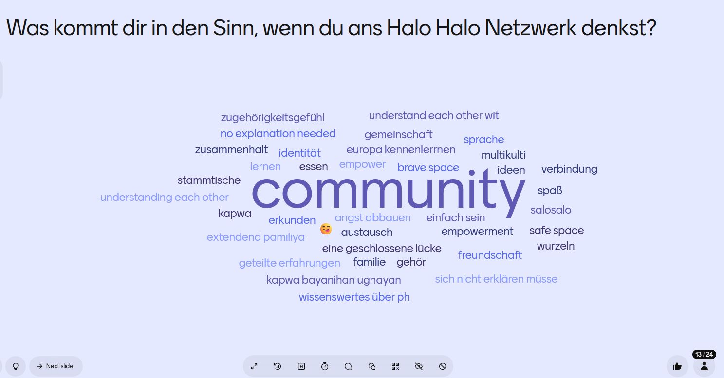 Ugat kommt aus dem Tagalog und bedeutet wörtlich übersetzt „Wurzeln“. Das Ugat-Meeting findet einmal monatlich (aktuell jeweils am ersten oder zweiten Montag im Monat ab 2024) online via Zoom statt. Moderiert wird es von einem Mitglied aus dem Halo-Halo Netzwerk. Mit einem kurzen Input soll es anschliessend zum Austausch und zur Diskussion anregen. Das Ugat-Meeting soll einen „Safe-Space“ darstellen, so dass es den Raum lässt über tiefgreifende Geschichten und Erlebnisse zu sprechen. Zum Abschluss stellt jeweils eine Person ein eigenes Projekt vor.